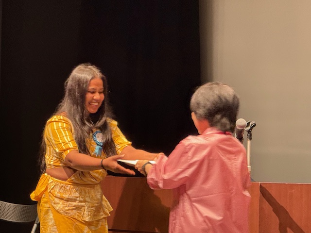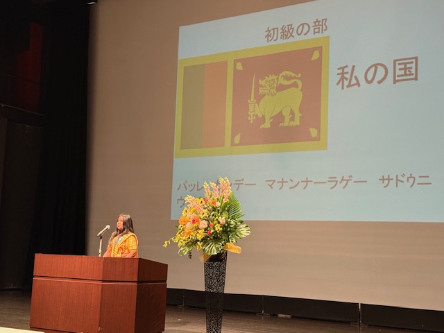 わたしたちの学校からは、「初級」レベルに1年生のウペクシャーさん(スリランカ)、「中級」レベルにヤナさん(インドネシア)が民族衣装(みんぞくいしょう)をまとって出場しました。審査結果は、なんと!ウペクシャーさんは「初級」レベルで1位獲得(かくとく)。ヤナさんは「中級」レベルで1位獲得。そしてギャラリー(かんきゃく)賞までいただきました。私たちはとってもとっても鼻が高いですねぇ。(「鼻が高い」意味を調べてくださいね。JLPTに出るかもですよぉ)