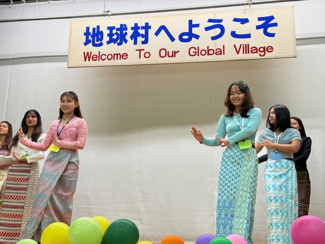 そのグローバルパーティにわたしたちの学生(がくせい)は初参加(はつさんか)し、ステージ披露(ひろう)してきましたので、その様子(ようす)をご覧(らん)ください。