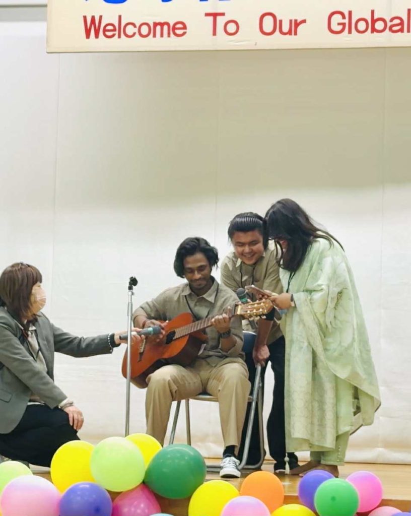 最後((さいご)はバングラディシュ、ミャンマー、ネパールの3人がインドのオリジナル曲(きょく)をギターと歌(うた)で披露(ひろう)しました。